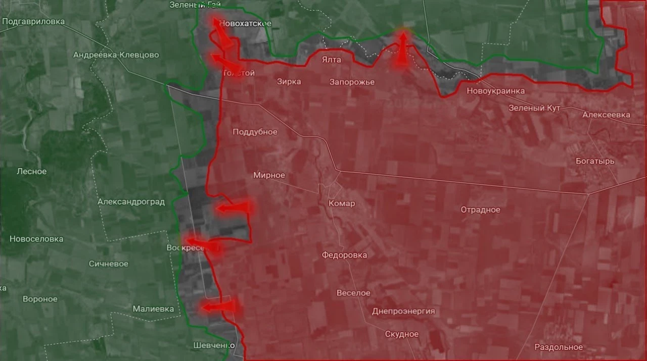 Запорожское направление: ВС РФ продвинулись в направлении Андреевка-Клевцово, западнее Поддубного направлении Александрограда, продолжаются встречные бои в западной части Малиевки. Российские войска ведут штурмовые действия на окраине Степногорска.