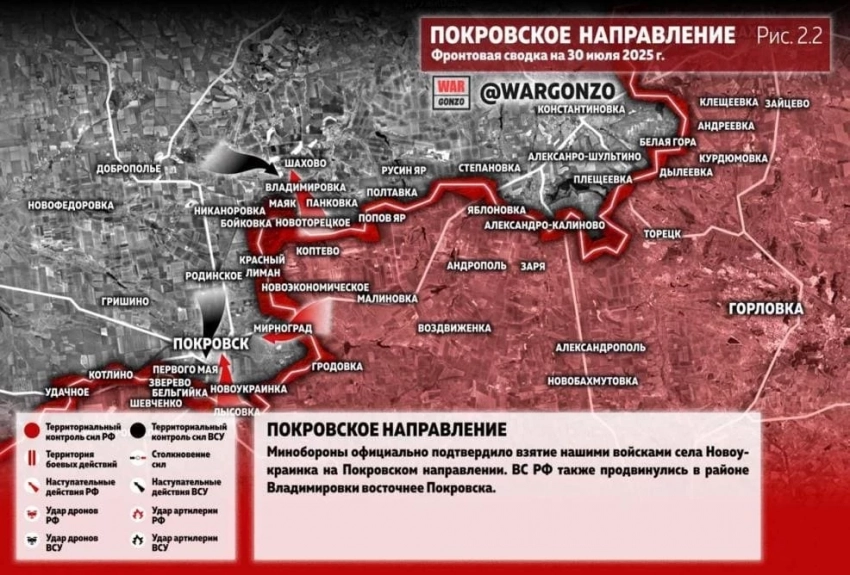 ВС РФ продвинулись в районе Владимировки восточнее Покровска: сводка СВО на 30.07.2025