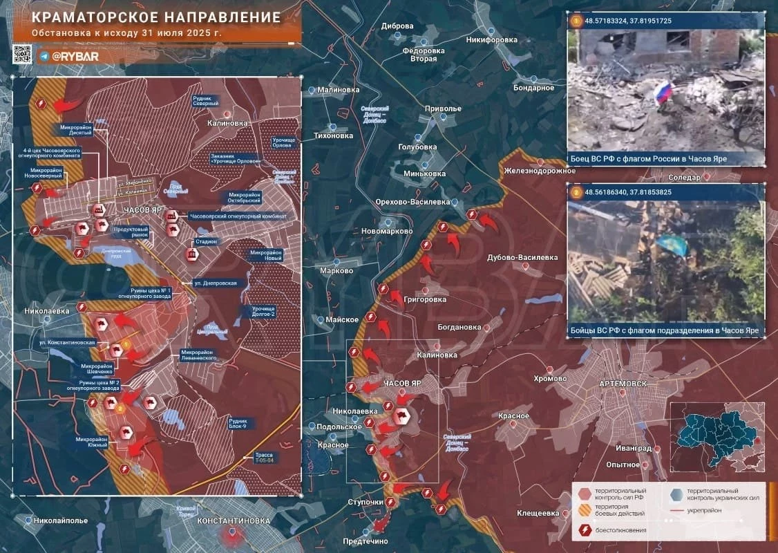 Карта боевых действий на Украине. Обстановка в зоне СВО на 1 августа