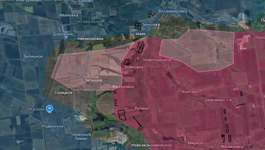 На Покровском направлении продолжаются позиционные бои в Удачном и Котлино. Киев официально признал присутствие российских ДРГ на территории Покровска, причем уже в центре города и в районе вокзала. ВСУ используют оперативный резерв, чтобы стабилизировать ситуацию в городе. В Мирнограде ситуация примерно такая же, с поправкой на то, что «дорога жизни» ВСУ через Родинское фактически перекрыта. Бои идут на окраине этого городка, а севернее него ВС РФ глубоко вклинились в оборону противника в сторону Шевченко. Продолжаются бои в Суворово и Никаноровке, выше по карте есть продвижение севернее Нового Шахово в сторону Доброполья.