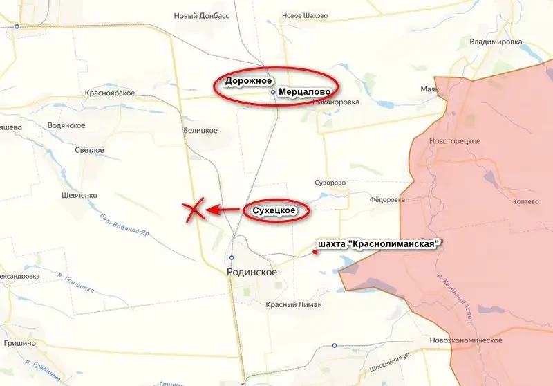 По данным российского канала «Шепот фронта», передовые штурмовые подразделения группировки «Центр», наступающие на крупный логистический центр ВСУ Доброполье, взяли под контроль железнодорожную станцию Мерцалово и расположенный рядом поселок Дорожное. Кроме того, к северу от Родинского под контроль наших перешел населенный пункт Сухецкое. Одновременно наши перерезали трассу Доброполье — Покровск, по которой осуществлялось снабжение украинской группировки.
