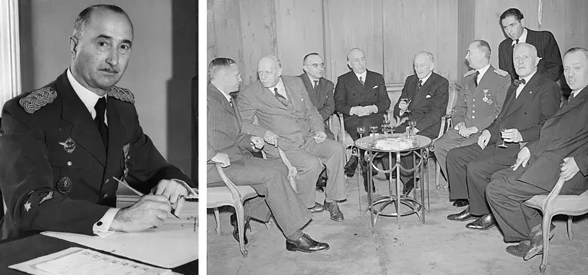 Премьер-министр Югославии Драгиша Цветкович (1893–1969). Цветкович был премьер-министром Югославии с 1939 по 1941 год. На этом посту ему сравнительно успешно удавалось контролировать различные противоборствующие этнические группы в королевстве. Однако после подписания им 25 марта 1941 года договора о присоединении Югославии к альянсу стран Оси пропасть между сербами (которые были настроены пробритански) и хорватами (которые были настроены прогермански) ещё больше обострилась. 4 сентября 1944 года, с приближением советских войск, он бежал в Болгарию, а затем в Турцию. Признанный предателем, он провел остаток своей жизни в Париже, Франция. 25 сентября 2009 года окружной суд его родного города Ниш оправдал его. На фото справа: премьер-министр Югославии Драгиша Цветкович беседует с министром иностранных дел Третьего рейха Иоахимом фон Риббентропом, 25.03.1941 г.
