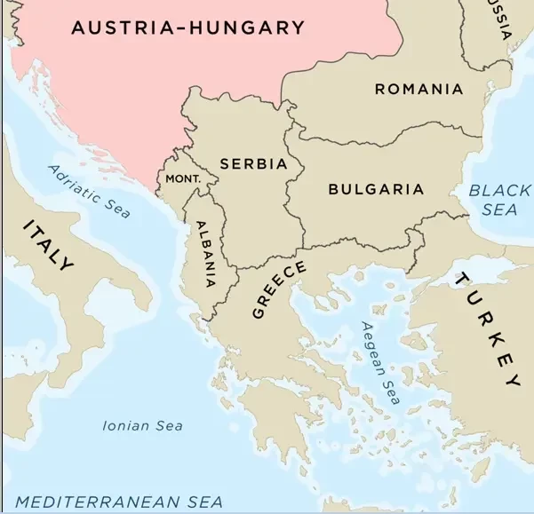 Балканские государства до начала Первой мировой войны. До Первой мировой войны Балканский полуостров был регионом острой политической нестабильности и национализма, где различные этнические группы боролись за независимость и влияние от уже ослабевшей Османской империи. Эта нестабильная ситуация, часто называемая «Балканской пороховой бочкой», стала одним из основных факторов, способствовавших началу войны