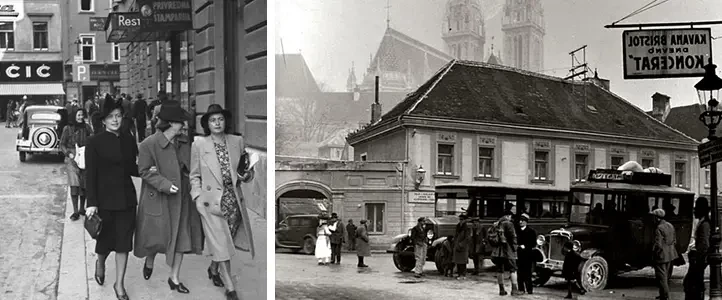 Улицы Загреба. В 20-30-е годы Загреб переживал значительные перемены и развитие, особенно в архитектуре и национальной идентичности. Это был период бурной культурной и художественной жизни и политических перемен, а сам город стал центром современной архитектуры, где царила оживленная социальная жизнь с элегантными отелями, кафе и местами, где можно было «на других посмотреть и себя показать». Но на этот период приходится и напряженность между сторонниками хорватской автономии и сторонниками централизации Сербии, что позже привело к образованию марионеточного хорватского государства под управлением стран Оси во время Второй мировой войны