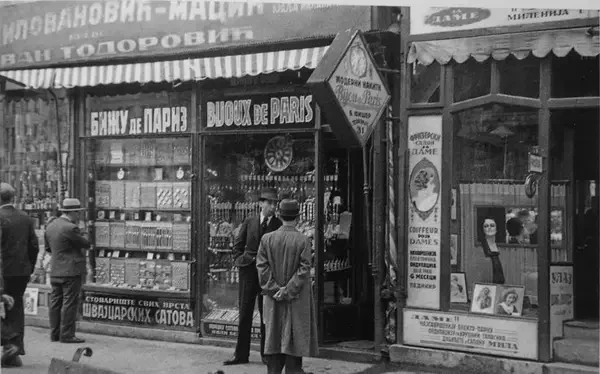 Еврейский магазин в Белграде. 30-е годы. В 20-30-х годах прошлого века в Югославии проживало около 78 000 евреев, включая около 4000 иностранных беженцев, спасавшихся от преследований в других странах. Это была разнообразная группа, включавшая как сефардские (40 %), так и ашкеназские (60 %) общины, с разной степенью интеграции в югославское общество. Большинство из них жили в городах и составляли примерно 0,5 процента населения. Сефарды, проживающие в Боснии, считались коренным элементом, который благодаря четырем векам жизни в регионе получил особые права. В Сербии лояльность евреев, многие из которых храбро сражались в сербской армии в Первой мировой войне, тоже никогда не ставилась под сомнение – они считались «своими» и говорили на сербском языке (ладино в основном уже был забыт). Евреи-ашкеназы из Хорватии, Словении и Воеводины говорили на немецком и венгерском языках и считались более чуждыми, чем евреи-сефарды