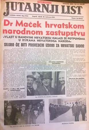 Соглашение между премьером Драгишей Цветковичем и хорватским политическим лидером Влатко Мачеком* было достигнуто почти мгновенно, но время для его реализации быстро истекало. Соглашение было подписано 26 августа 1939 года, всего за пару дней до начала Второй мировой войны. В соответствии с соглашением была создана первая автономная администрация в Югославии с местонахождением в Загребе. Можно только предполагать, какой курс она бы приняла, если бы не Вторая мировая война...