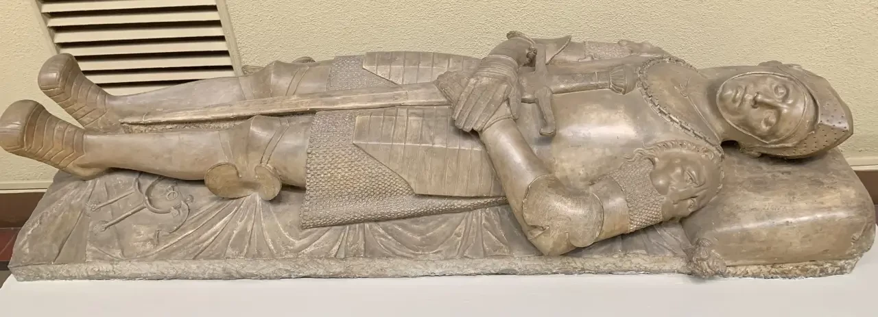 Одним из объектов моего постоянного интереса являются эффигии – надгробные скульптуры. И в музее им. Пушкина они тоже есть. Вот эффигия графа Випрехта фон Гройча. Слепок. Гипс, тонированный под раскрашенный камень. Подлинник: около 1230 – 1240; песчаник; подлинник в церкви Святого Лаврентия, Пегау, Германия