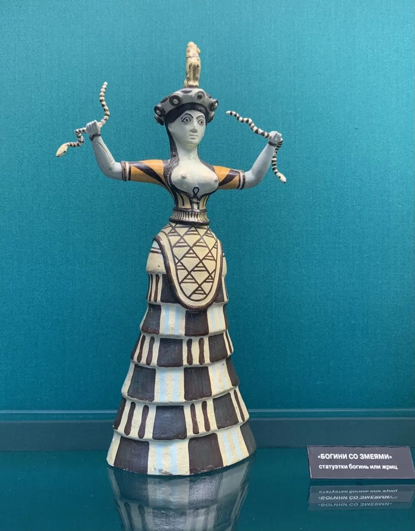 Копия «Богини со змеями». Подлинник в археологическом музее Гераклиона на Крите