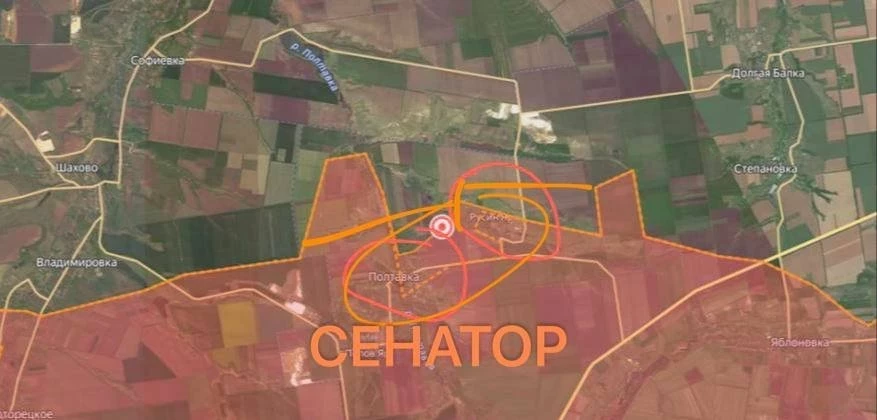 "На Дружковском направлении штурмовые подразделения ВС РФ выбили противника из н. п. Русин Яр (ДНР). Противник зачищается в кармане между Русиным Яром и Полтавкой", — написал журналист.