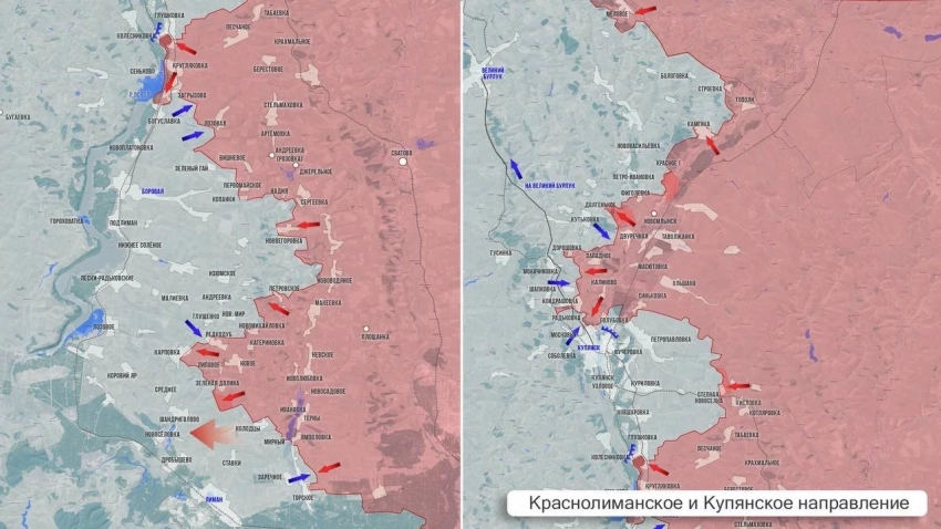 На Краснолиманском участке ВС РФ штурмуют западные окраины Заречного. Наши взяли под контроль ферму в Шандриголово, идут тяжёлые бои за село. Также наши атакуют по линии Колодези - Заречное и Зелёная Долина - Среднее - Шандриголово, чтобы отрезать ВСУ севернее участка железной дороги Изюм - Лиман. После этого наши военные смогут выдвинуться в район Рубцы - Оскол и, возможно, перебраться на правый берег реки Оскол.