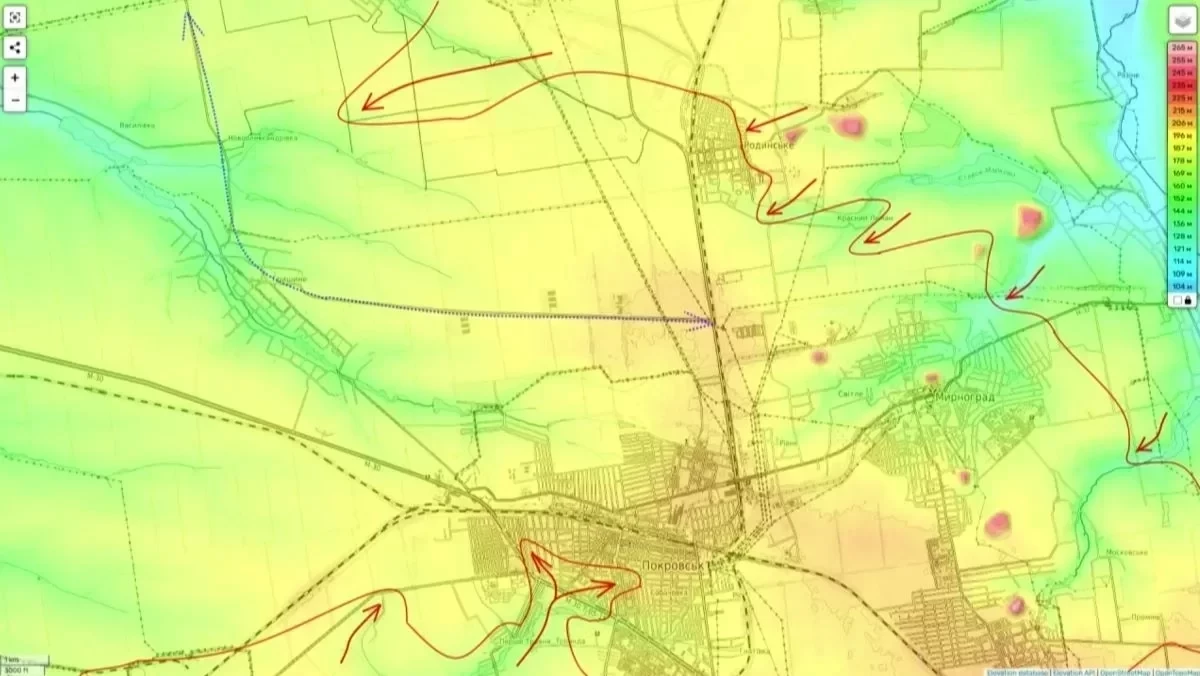 В самом Покровске сохраняется локальное присутствие обеих сторон - ни у ВС РФ, ни у ВСУ нет ресурсов для полного штурма или обороны города. По словам Подоляки, ситуация характеризуется как «винегрет», где активна борьба за дороги снабжения и коммуникации.