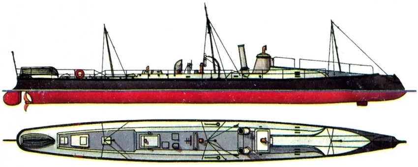Некоторые особенности корабельной архитектуры заставляют ряд исследователей думать, что под миноносец завод пустил корпус строящейся либо уже построенной яхты «Маб»: уж больно необычными для боевого корабля были обводы и вооружение миноносца. Одна медная обшивка чего стоит! Миноносец спустили на воду 13 августа 1877 года, в строй ввели к концу года. В целом, первый блин, полностью оправдав пословицу, вышел комом.