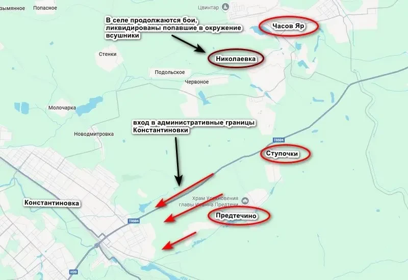 Второй успех праздновали штурмовики из состава 6-й мотострелковой дивизии, вошедшие в административные границы Константиновки со стороны Предтечино. Поступавшая ранее информация о выходе подразделений ВС РФ на окраины города подтверждается, но там речь шла только о разведчиках и ДРГ.