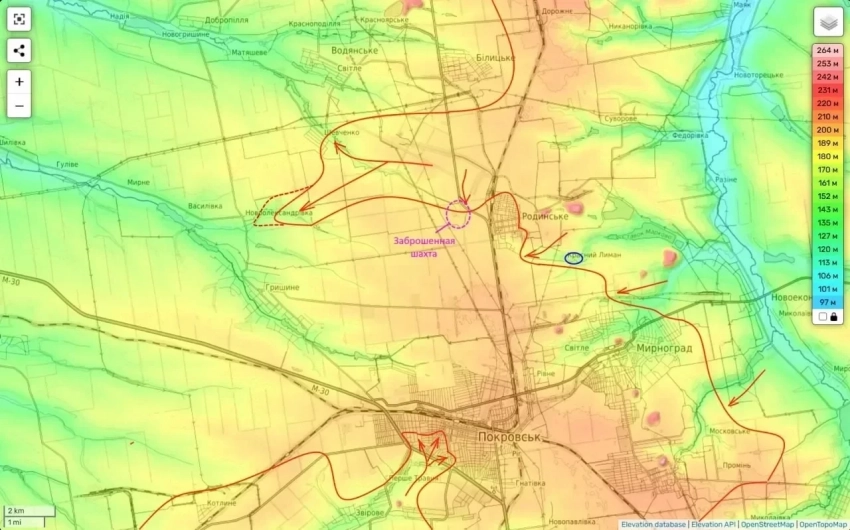 На Покровском направлении на участке Родинское - Белицкое - Шевченко продолжаются интенсивные боевые действия. Российские войска избегают прямого лобового штурма укреплённого Родинского, сосредотачивая усилия на фланговых манёврах, зачистке окрестностей и захвате важнейших рубежей в районе Красного Лимана.