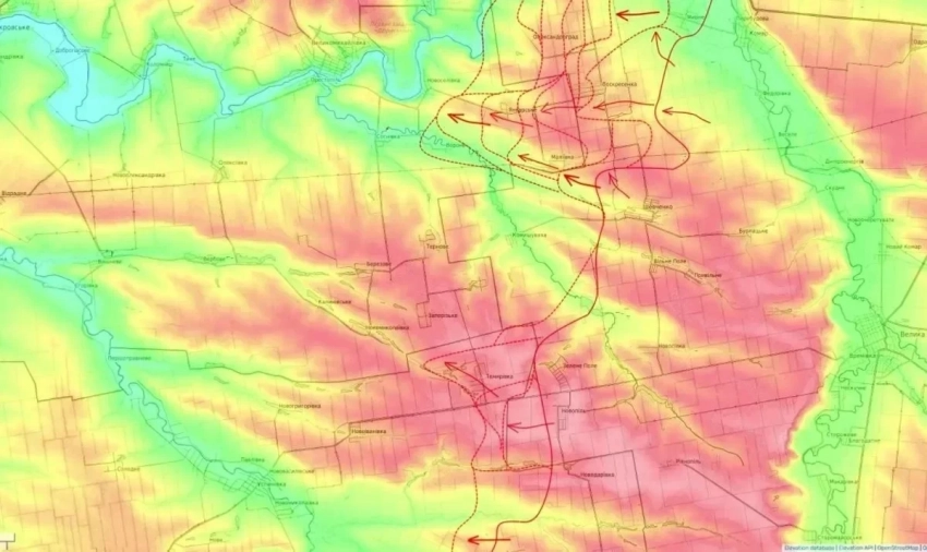 В свою очередь на Новопавловском направлении российская группировка войск "Восток" продолжает методичное продвижение. Основные наступательные действия развиваются с северо-запада от Великой Новосёлки в направлении Успеновки, Камышевахи и Великой Михайловки.