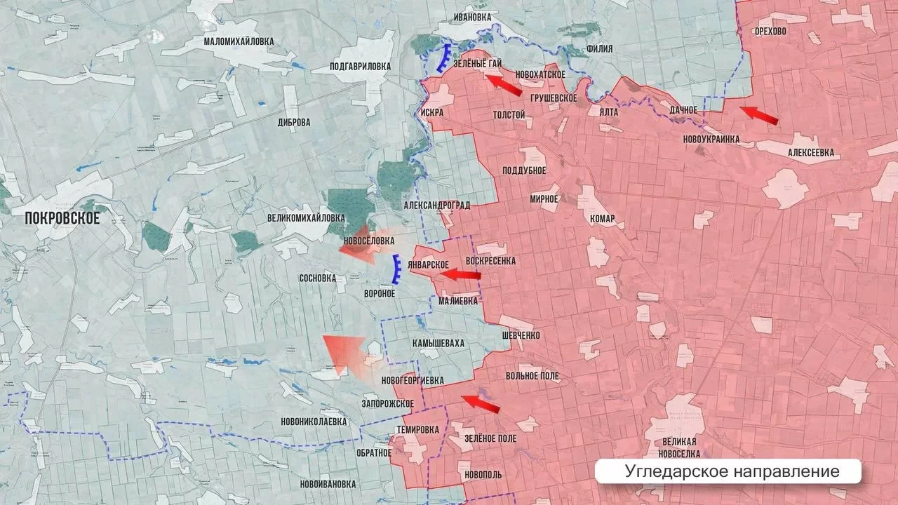 На Угледарском направлении подразделения ВС РФ планомерно расширяют зону контроля в районе Темировки. К западу от Малиевки в результате успешных штурмовых действий было освобождено село Вороное.