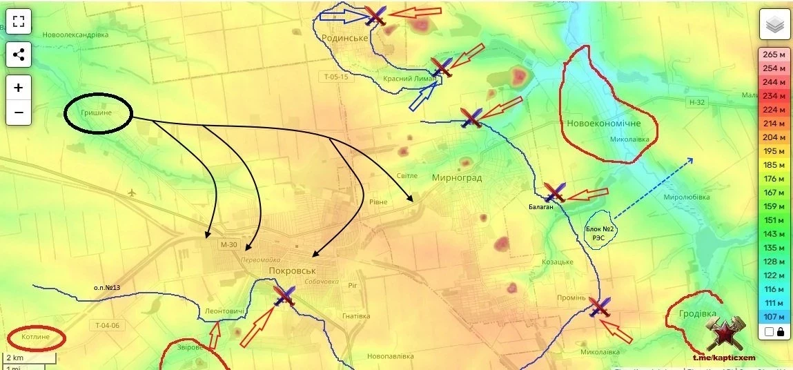 На Покровском (Красноармейском) направлении идут бои в Удачном, у Леонтовичей и между Трояндой и Шевченко. Из-за «красивых докладов» о взятом Новоэкономическом, достаточности личного состава и средств борьбы с дронами, диверсантами враг на днях протопал «взятое» Новоэкономическое к Малиновке, захватил пленных.