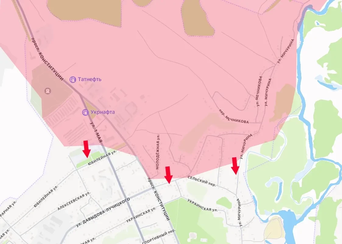 В настоящее время от передовых позиций армии России на севере Купянска до центра города (здания местной администрации) остаётся около 1,6 км.