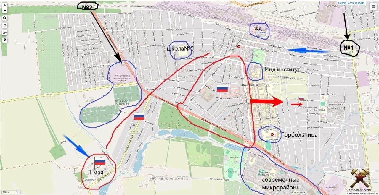 Взятие н.п. Первое мая ослабляет западный фланг Покровского гарнизона ВСУ и приближает штурмовые части к узлу Кладбище-Автопредприятие. На востоке наши подразделения достигли улицы Пушкина между двумя узлами обороны.