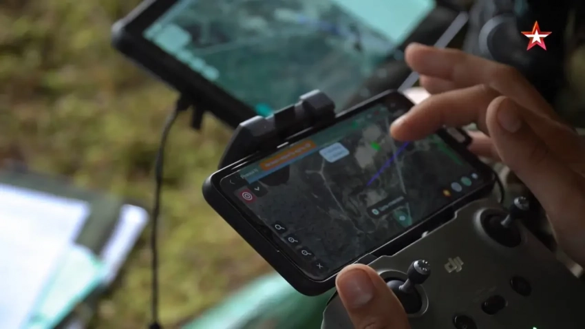 Оператор БПЛА осматривает местность. Кадр из д/ф «Военное образование. С учётом боевого опыта»