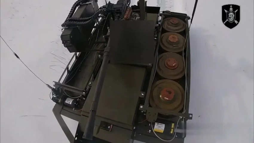 Российская армия использует в зоне проведения Спецоперации разнообразнее наземные робототехнические комплексы. С начала прошлого года на фронте работают многоцелевые изделия «Курьер». Дистанционно управляемые гусеничные машины этого типа способны перевозить различные грузы или служить платформой для различного вооружения. В зависимости от нагрузки, такой НРТК может быть транспортом или боевой машиной.