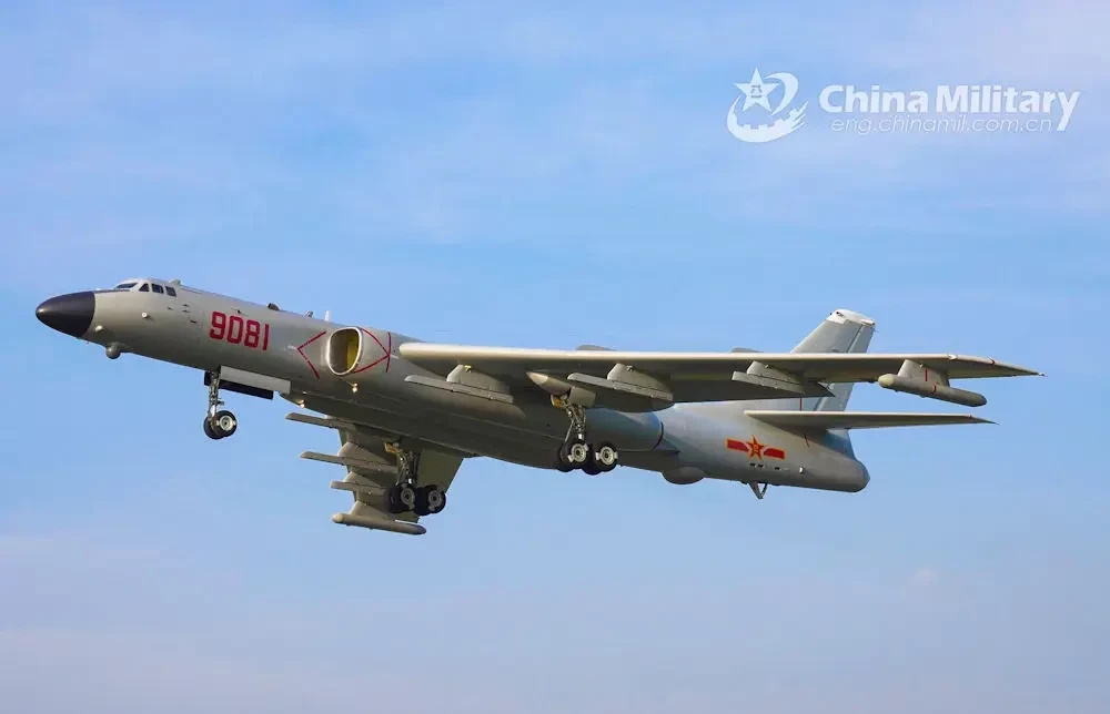 Бомбардировщик H-6K. Видны точки подвески ракетного вооружения. Фото Chinamil.com.cn