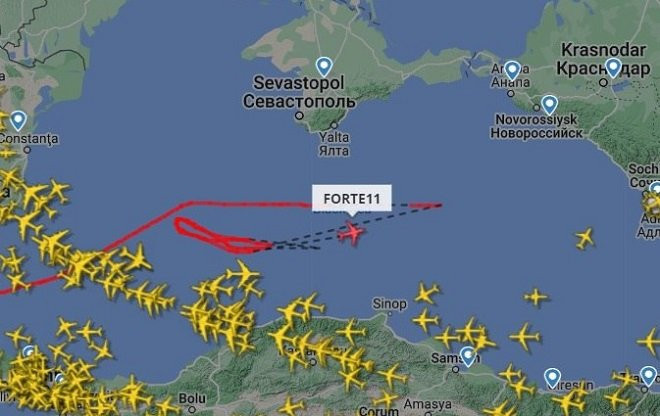 Незадолго до атаки украинских катеров крупный разведывательный беспилотник США находился недалеко от Новороссийска и Крыма.