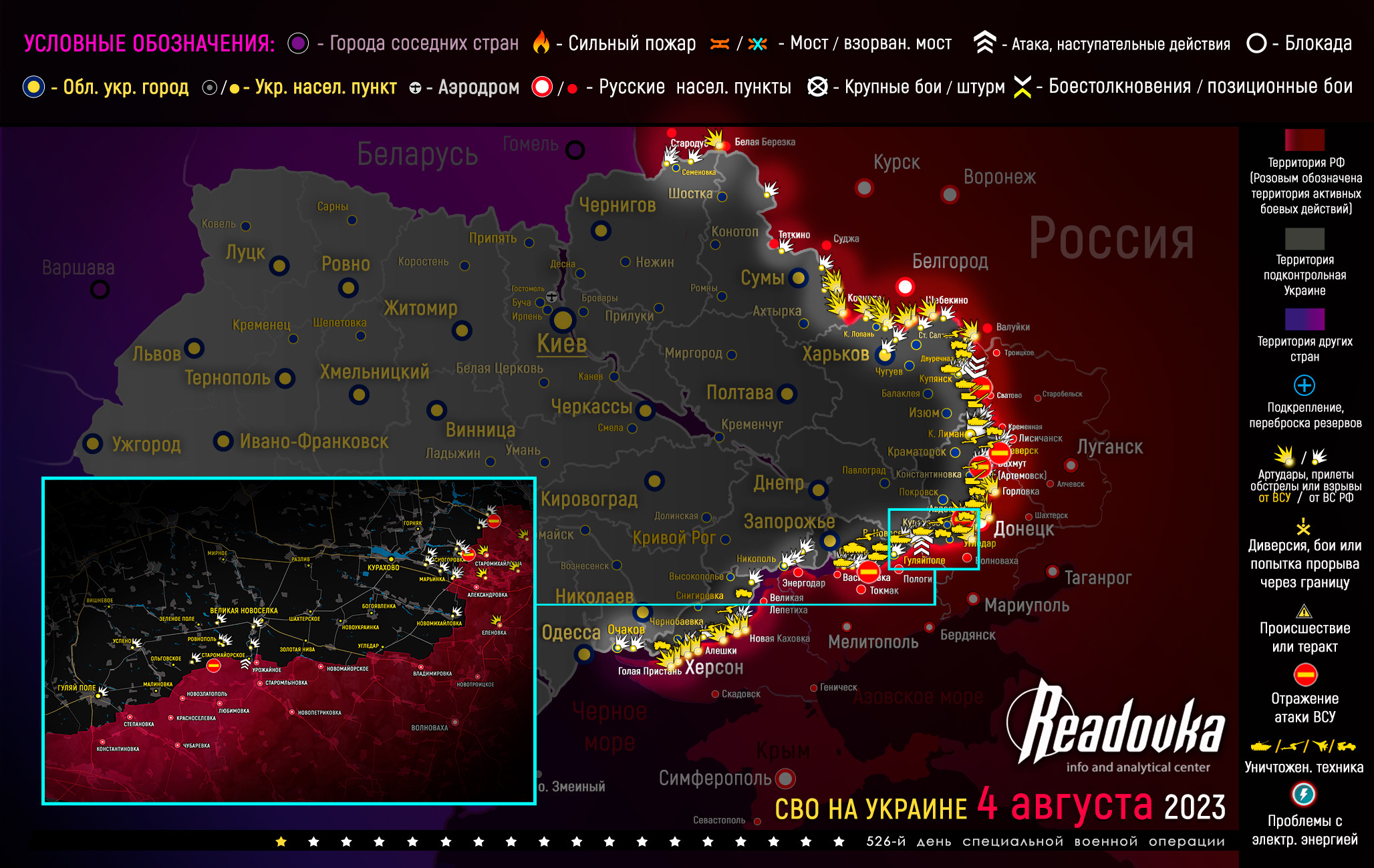 Карта военных действий и ситуация на фронтах вечером 4 августа от Телеграм-канала «Readovka»