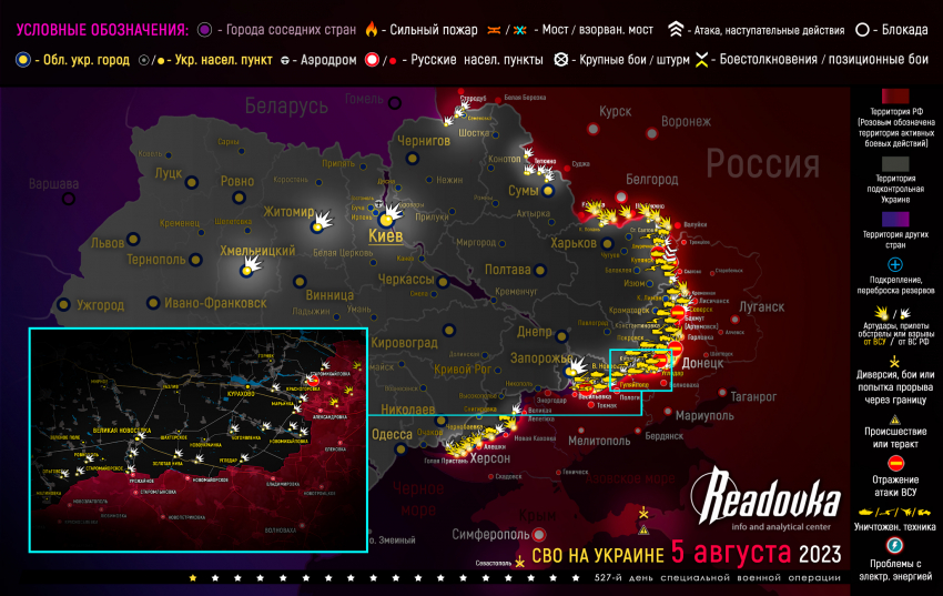 Карта военных действий и ситуация на фронтах вечером 5 августа от Телеграм-канала «Readovka»
