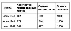 Все это не просто забавные математические игры, они имеют практическое применение. И вот сейчас мы перейдем ко Второй мировой войне. Союзники прикладывали во время войны большие усилия, чтобы понять, каким объемом военной техники располагал вермахт. Среди прочего, они пытались узнать, какое количество танков было произведено немецкой промышленностью. Для этого союзники собирали информацию при помощи шпионов, а также использовали для расчетов серийные номера разрушенных ими в ходе войны танков. Основываясь на данных расчетов, мог быть оценен объем производимых за один месяц танков. Это давало командующим войсками союзников ценные указания по планированию собственного военного производства.