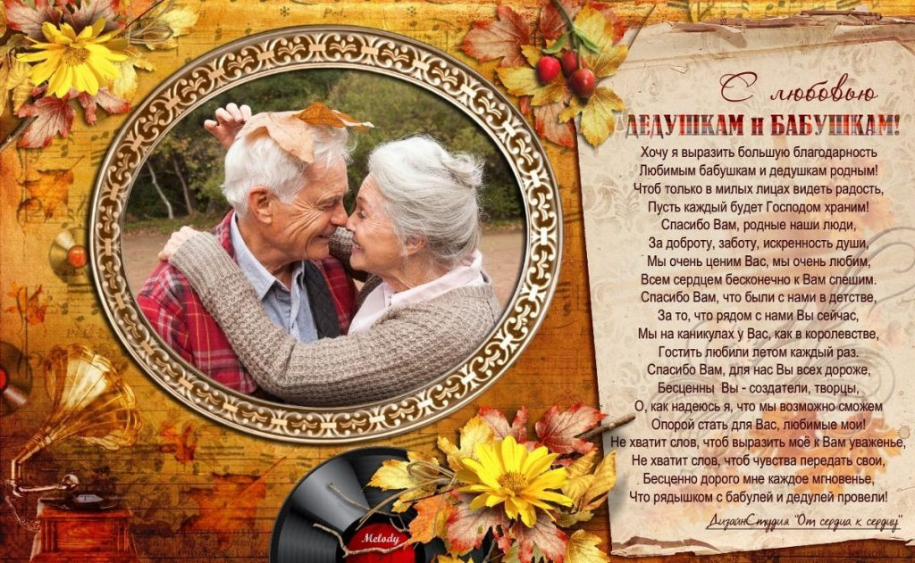 Поздравляем наших бабушек и дедушек с таким замечательным праздником. Желаем им здоровья, долголетия и всех благ! Пусть ваши души наполняется теплом и светом, а сердца — любовью и радостью. Спасибо за вашу заботу, ласку, терпение и за ту мудрость, которую вы передаете своим детям и внукам. Живите счастливо!