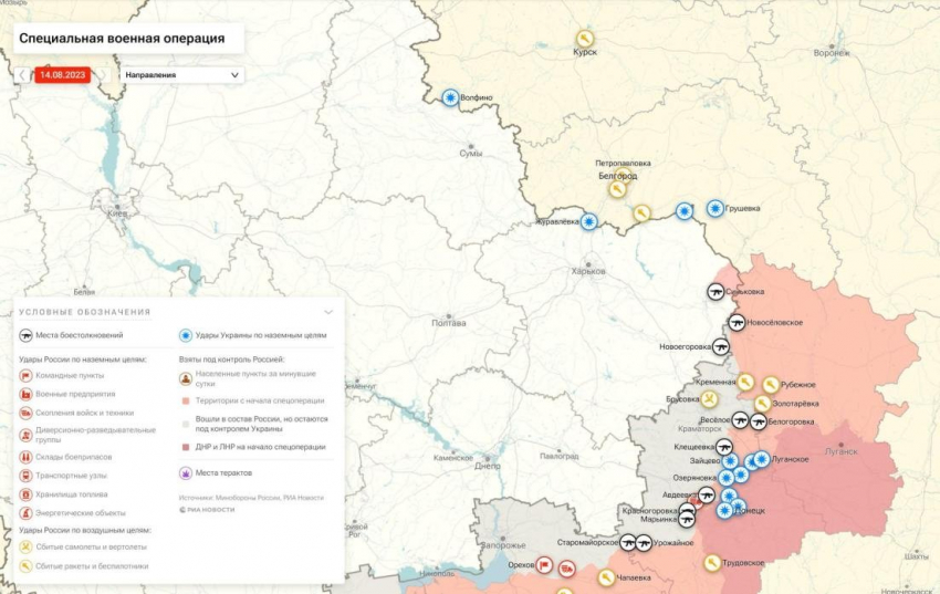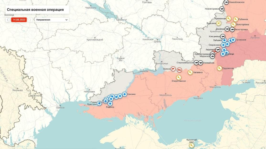 Карта боевых действий на Украине: актуальные сведения на 14.08.2023