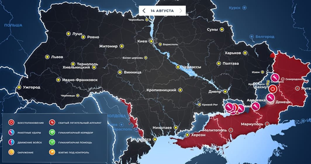 Карта боевых действий на Украине: обновленные данные по состоянию на 14 августа