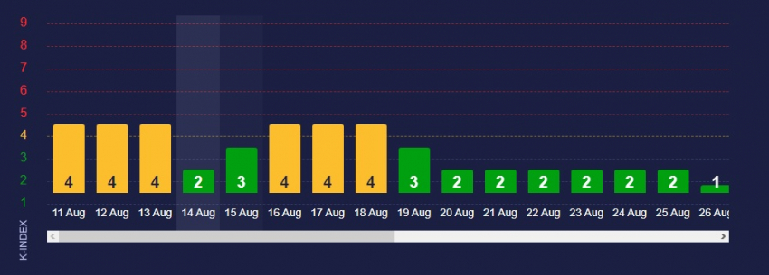 Как видно из графика, они не превысят K-index 3, оставаясь в зеленой зоне.