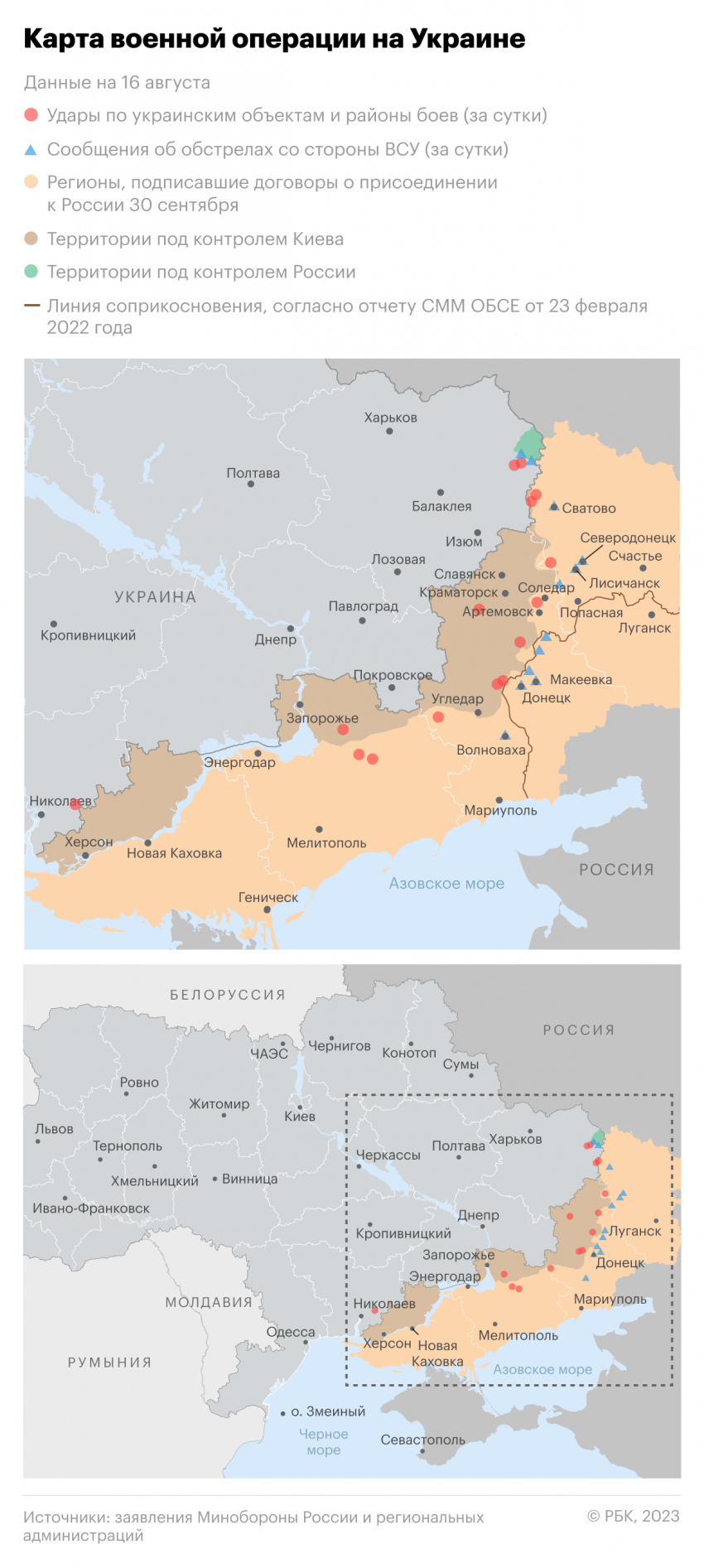 Обновленная карта боевых действий на Украине по данным на утро 17 августа — Минобороны обновило новую карту боевых действий 17.08.2023