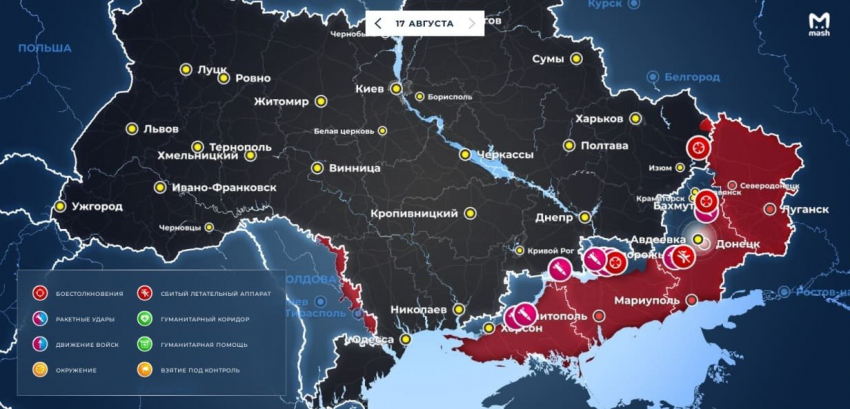 Карта боевых действий на Украине: обновленные данные по состоянию на 17 августа