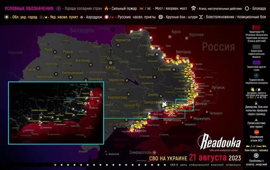 Карта боевых действий на Украине от 22.08.2023