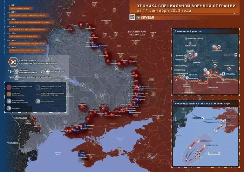 Хроника специальной военной операции на Украине: карта боевых действий по состоянию на 15.09.2023