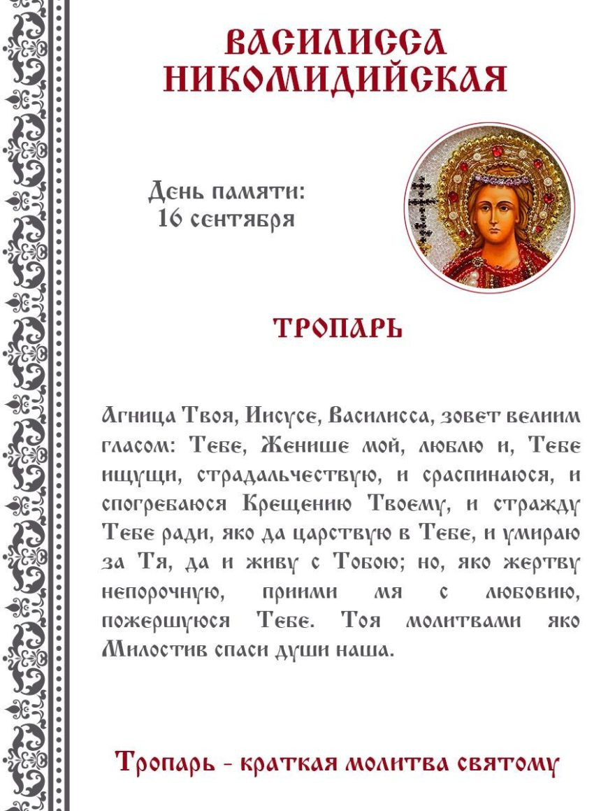 - Молитва в День ангела Василисы 16 сентября