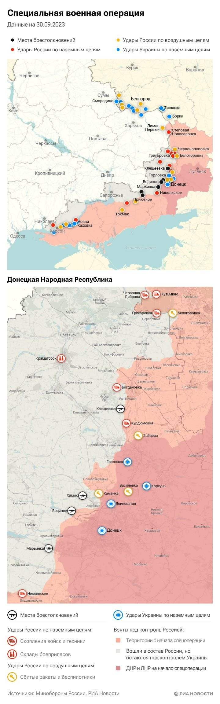 Боевые действия на Украине: актуальная карта на 01.10.2023