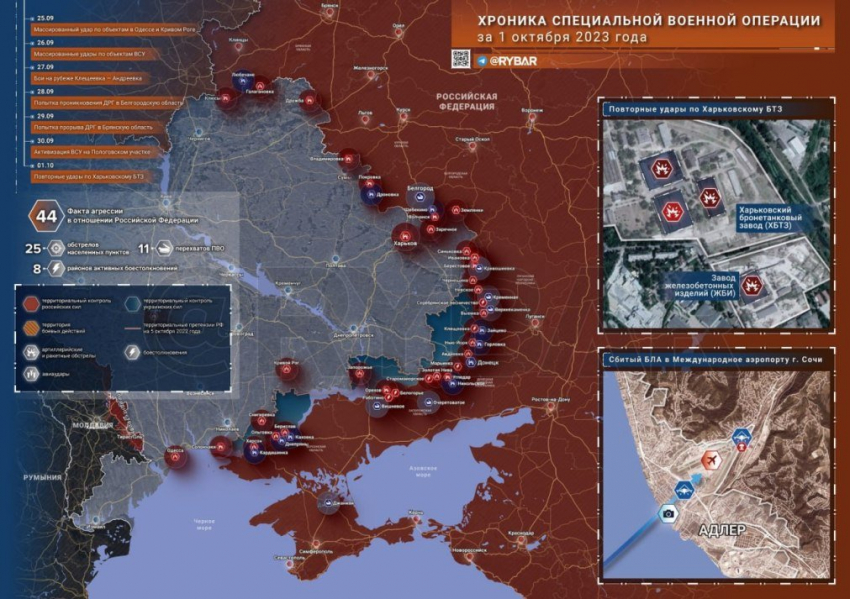 Карта боевых действий на Украине на сегодня, 2 октября 2023 года