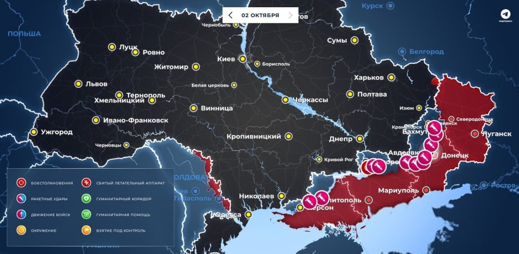 Карта боевых действий в зоне СВО на Украине по состоянию на 02.10.2023