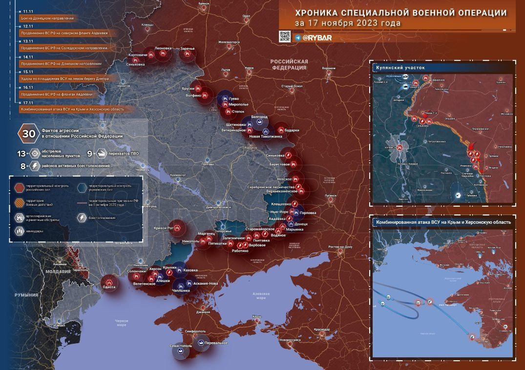 Свежая карта боевых действий на Украине по данным на сегодня, 18 ноября 2023 года