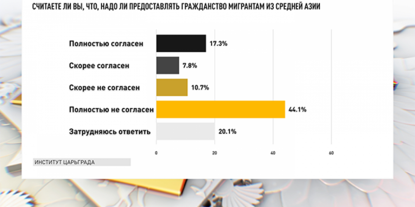 С предоставлением гражданства выходцам с югов согласны 25,1% граждан, не согласны – 54,8%.
