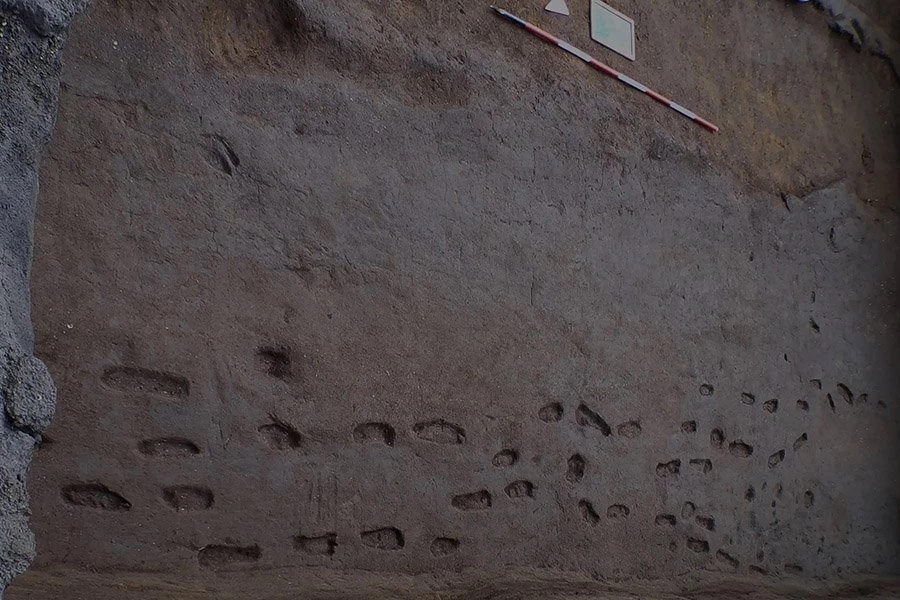 В течение двух лет археологи проводили раскопки в четырех муниципалитетах в районе Салерно в преддверии модернизации газопровода. Следы мужчин, женщин, детей, некоторые босиком, некоторые обутые, и животных были найдены возле ручья Казарцано, что свидетельствует о том, что в тени комплекса Сомма-Везувий в раннем бронзовом веке жило сообщество.