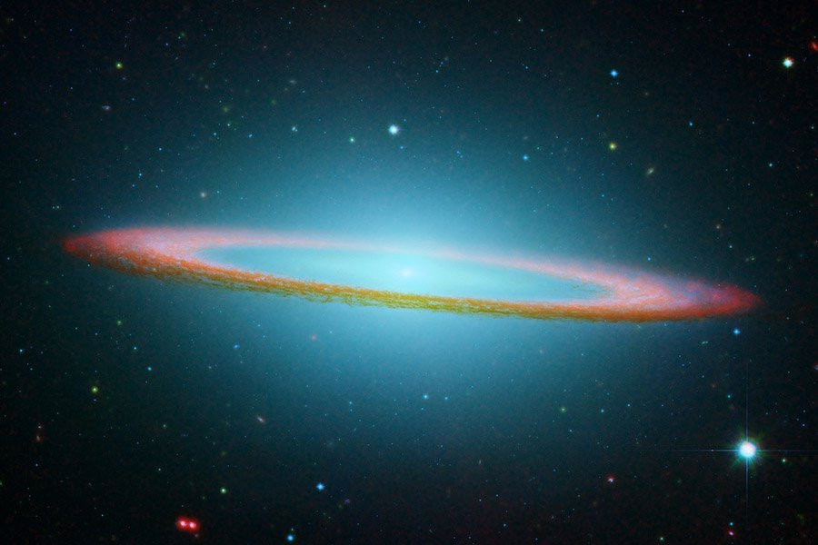 Галактика Сомбреро (также известная как Мессье 104 или NGC 4594) представляет собой спиральную галактику без перемычки, расположенную между границами созвездий Девы и Ворона, примерно в 31 миллионе световых лет от нас. Обладая массой около 800 миллиардов солнечных масс, это один из самых массивных объектов в скоплении галактик Девы. Он также содержит богатую систему шаровых скоплений.