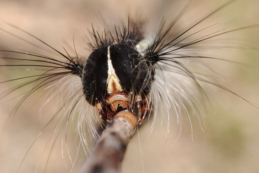 Одна из «героинь» статьи — гусеница непарного шелкопряда (Lymantria dispar). Фото М. Е. Якимовой. Источник: руководитель проекта, поддержанного грантом РНФ, Вячеслав Мартемьянов.