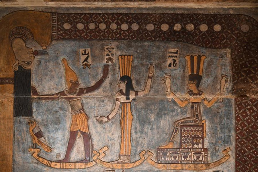На картинах изображены египетские божества Орион (также называемый Сах), Сотис и Анукис на соседних лодках, а богиня неба Нут, поглощающая вечернее небо над ними — мифология, подробно описывающая египетский Новый год. Об этом говорится в заявлении Тюбингенского университета в Германии, представители которого совместно с Министерством туризма и древностей Египта проводили реставрацию.