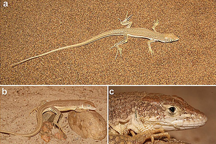Команда обнаружила, что средняя длина ящериц составляла примерно 18 см, а уникальная окраска их спины и тела позволяла им хорошо сливаться с средой обитания пустыни. Они также отметили, что ящерицы, как правило, неподвижно сидят на камнях или участках песка, а иногда убегают под близлежащие кусты, чтобы охладиться или поймать добычу.