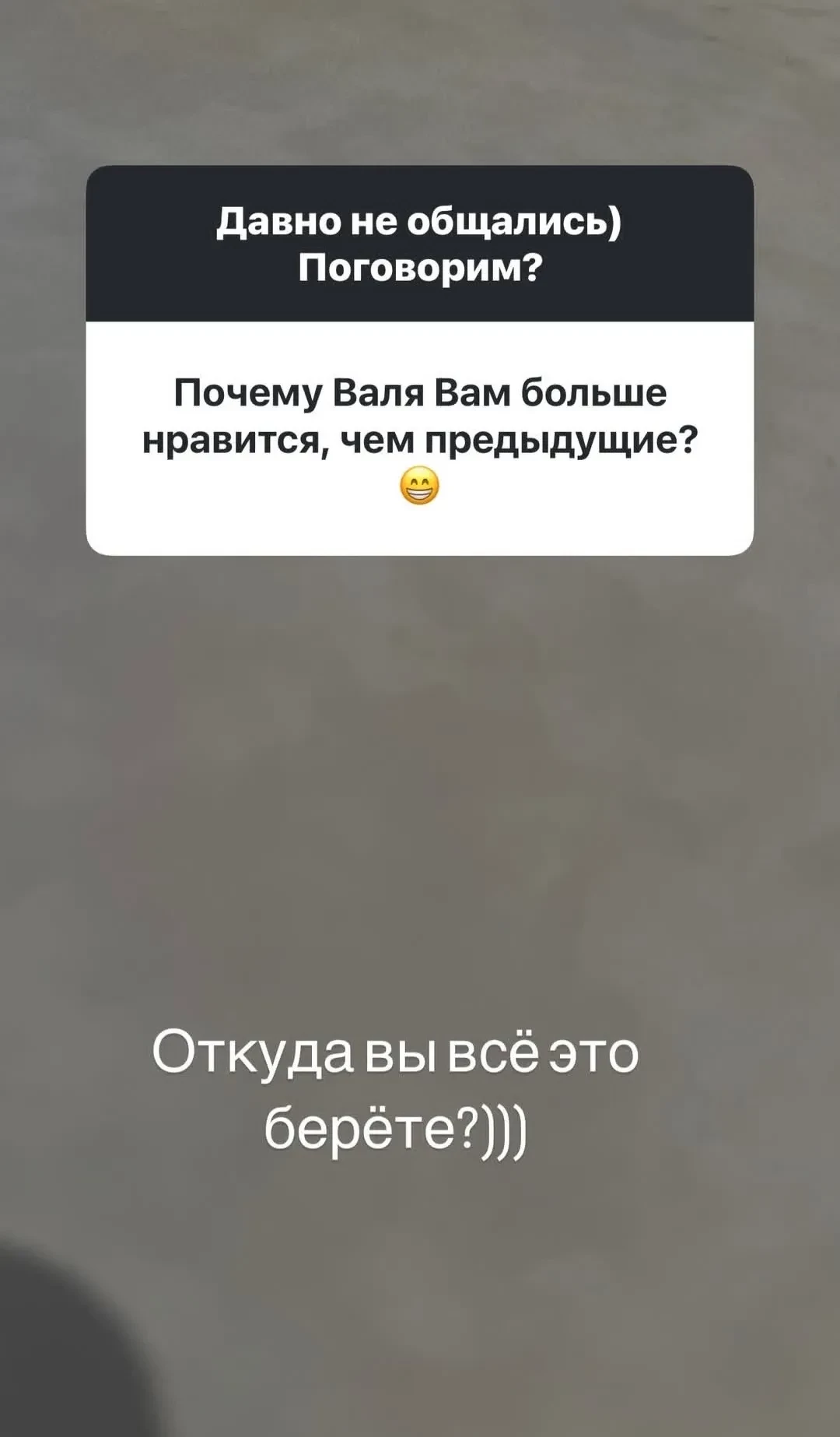 Конечно же, многих фолловеров Симоны интересовало, женился ли Тимати на своей нынешней девушке Валентине Ивановой: слухи об этом рэпер спровоцировал сам в декабре прошлого года. Симона ответила, что, скорее всего, знала бы о свадьбе, если бы та состоялась. Впрочем, она ничего не сказала о помолвке, так что Тимати и Валентина всё ещё могут быть обручены. На это намекает кольцо на безымянном пальце девушки, которое та стала часто демонстрировать в соцсетях.